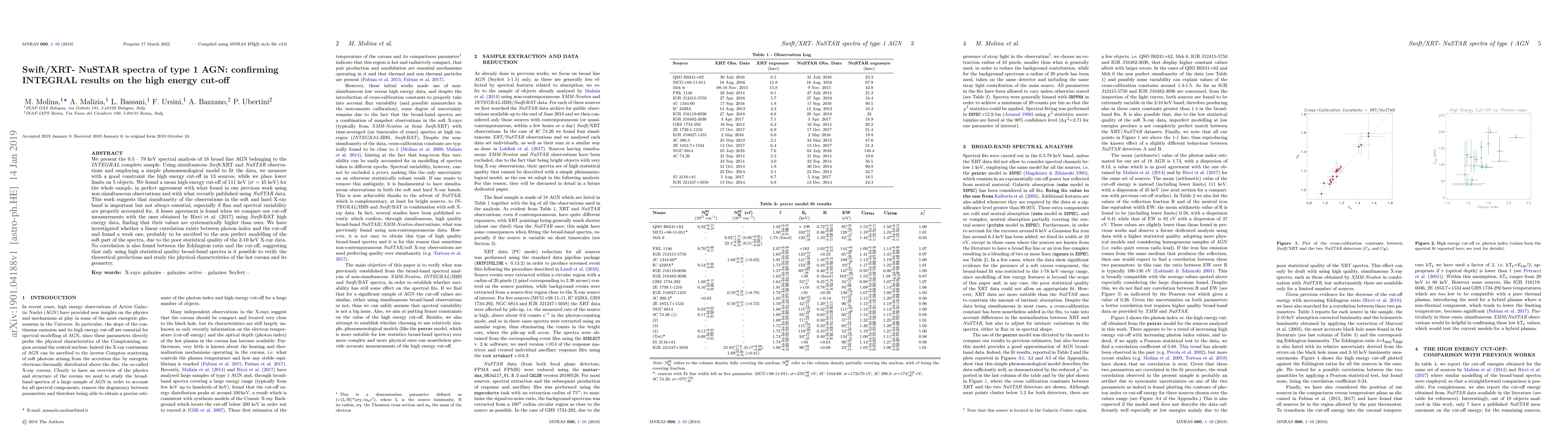 We present the 0.5 - 78 keV spectral analysis of 18 broad line AGN belonging to the INTEGRAL complete sample. Using simultaneous Swift-XRT and NuSTAR observations and employing a simple phenomenological model to fit the data, we measure with a good constraint the high energy cut-off in 13 sources, while we place lower limits on 5 objects. We found a mean high-energy cut-off of 111 keV (standard deviation = 45 keV) for the whole sample, in perfect agreement with what found in our previous work using non simultaneous observations and with what recently published using NuSTAR data. This work suggests that simultaneity of the observations in the soft and hard X-ray band is important but not always essential, especially if flux and spectral variability are properly accounted for. A lesser agreement is found when we compare our cut-off measurements with the ones obtained by Ricci et al. (2017) using Swift-BAT high energy data, finding that their values are systematically higher than ours. We have investigated whether a linear correlation exists between photon index and the cut-off and found a weak one, probably to be ascribed to the non perfect modelling of the soft part of the spectra, due to the poor statistical quality of the 2-10 keV X-ray data. No correlation is also found between the Eddington ratio and the cut-off, suggesting that only using high statistical quality broad-band spectra is it possible to verify the theoretical predictions and study the physical characteristics of the hot corona and its geometry.