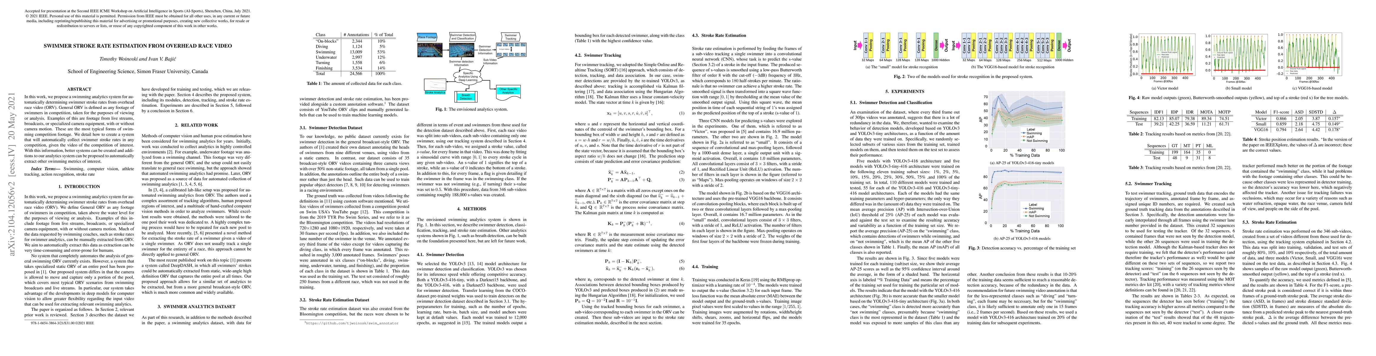 In this work, we propose a swimming analytics system for automatically determining swimmer stroke rates from overhead race video (ORV). General ORV is defined as any footage of swimmers in competition, taken for the purposes of viewing or analysis. Examples of this are footage from live streams, broadcasts, or specialized camera equipment, with or without camera motion. These are the most typical forms of swimming competition footage. We detail how to create a system that will automatically collect swimmer stroke rates in any competition, given the video of the competition of interest. With this information, better systems can be created and additions to our analytics system can be proposed to automatically extract other swimming metrics of interest.