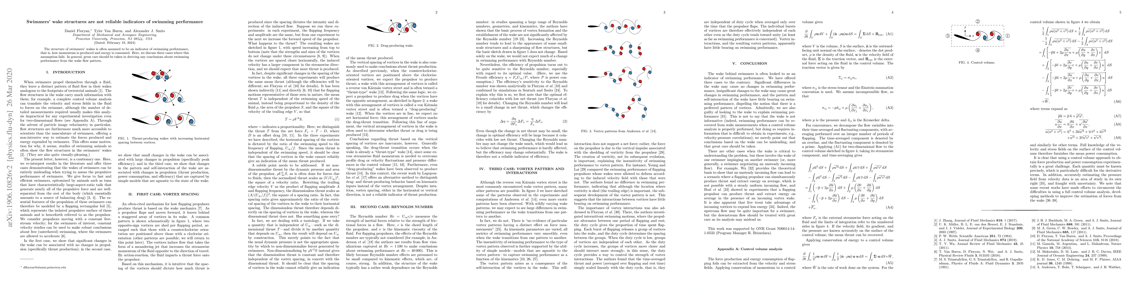 Summary: Swimmers' wake structures are commonly misinterpreted as indicators of swimming performance; however, this study identifies three cases where wake patterns do not correlate with actual performance, highlighting the need for caution in using wake flow as a performance metric.
