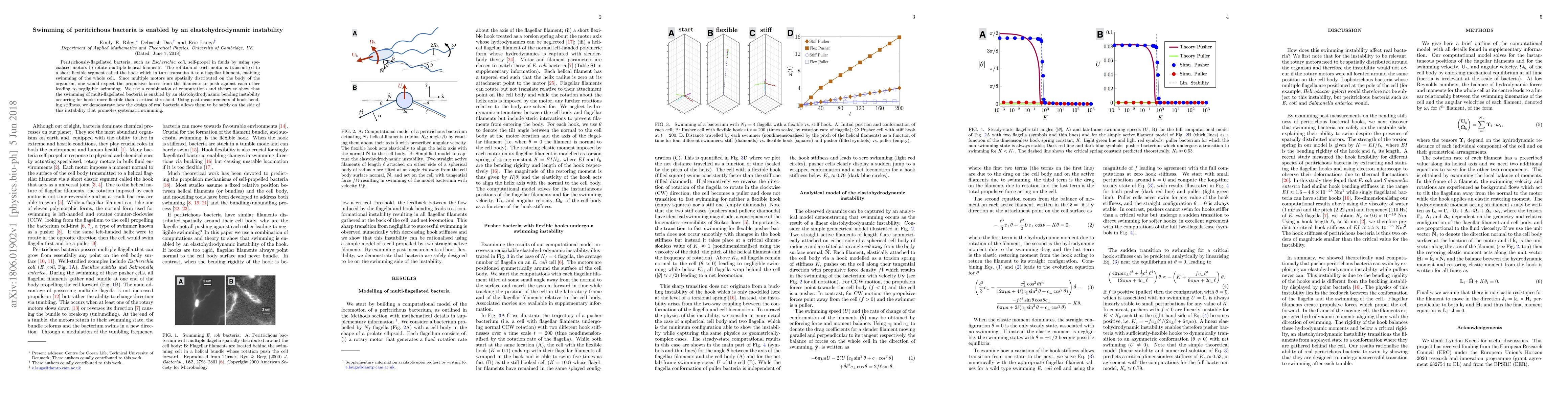 This paper demonstrates that peritrichous bacteria swim due to an elastohydrodynamic bending instability in their flexible flagellar hooks, overcoming the expected interference from multiple propulsive forces. Theoretical and computational models show that hooks exceeding a critical flexibility threshold promote effective swimming.