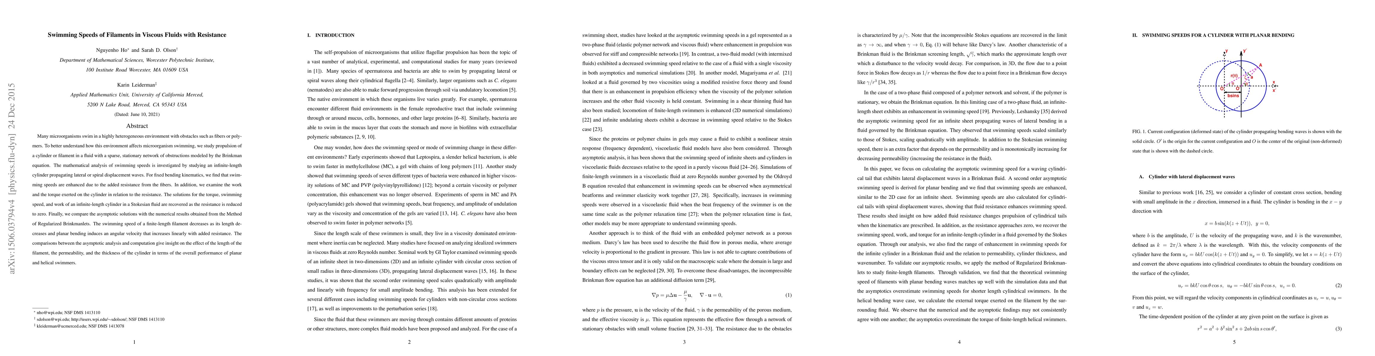 This study investigates how resistance from fibers in a fluid affects the swimming speed of cylindrical microorganisms, finding that added resistance enhances speeds and induces angular velocity, with performance improving as resistance decreases.