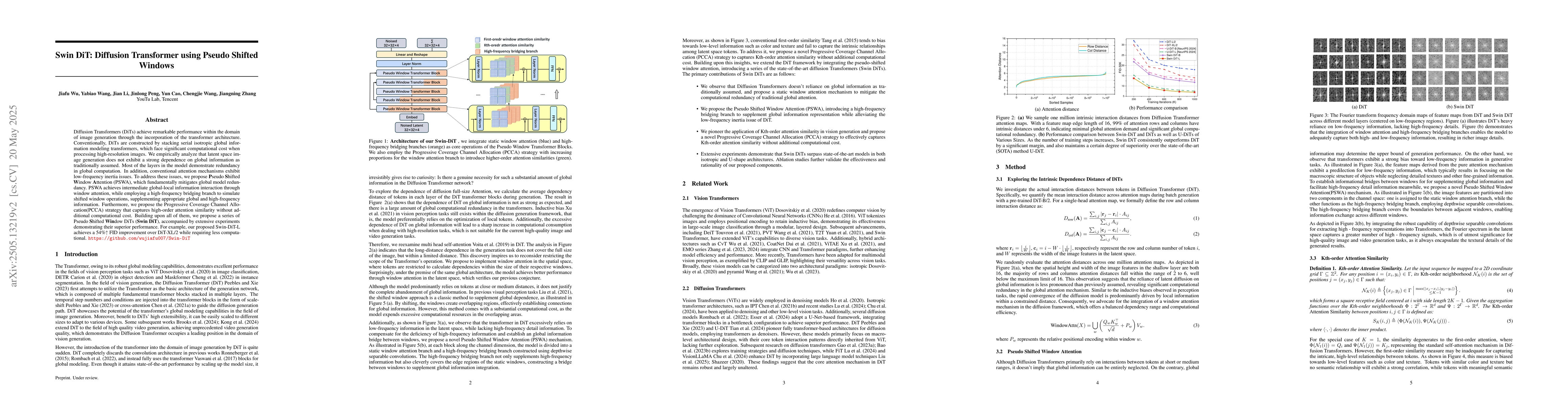 This research paper proposes a new image generation model called Swin DiT, which uses pseudo shifted windows to reduce computational cost while achieving better performance than traditional Diffusion Transformers.