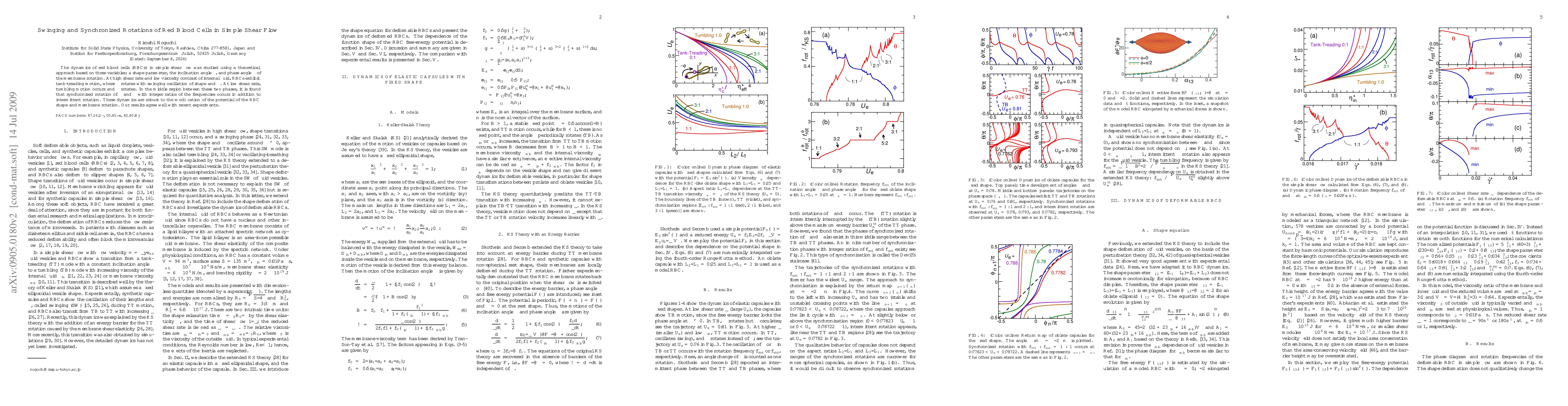 This study explores the rotational dynamics of red blood cells in simple shear flow, revealing tank-treading and tumbling motions under different shear rates, and identifying synchronized rotations in an intermediate regime. Theoretical findings align with experimental observations.