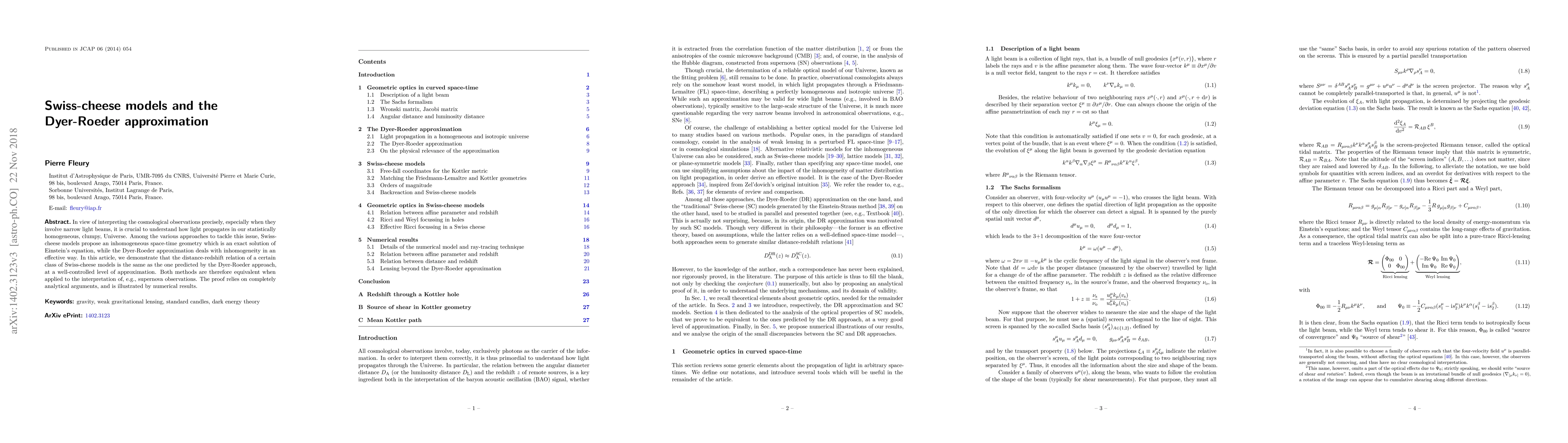 This paper compares Swiss-cheese models and the Dyer-Roeder approximation to understand light propagation in a clumpy universe. It shows that both methods yield the same distance-redshift relation, proving their equivalence for interpreting cosmological observations like supernovae, with analytical proofs and numerical illustrations.