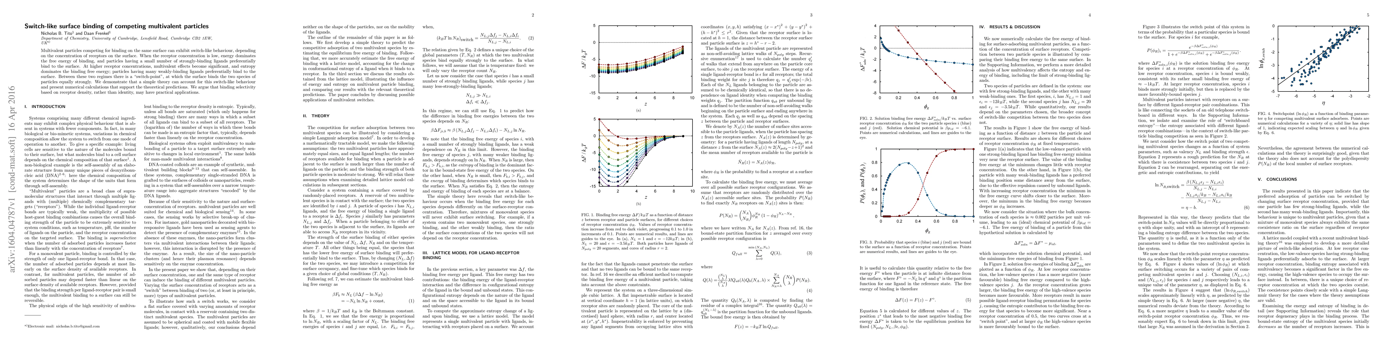 This paper investigates how multivalent particles compete for binding on a surface, showing a switch-like behavior depending on receptor concentration. At low receptor concentrations, particles with fewer strong ligands dominate, while at higher concentrations, those with many weak ligands prevail, with a switch-point in between. The study supports a theoretical model explaining this phenomenon and suggests potential practical applications.