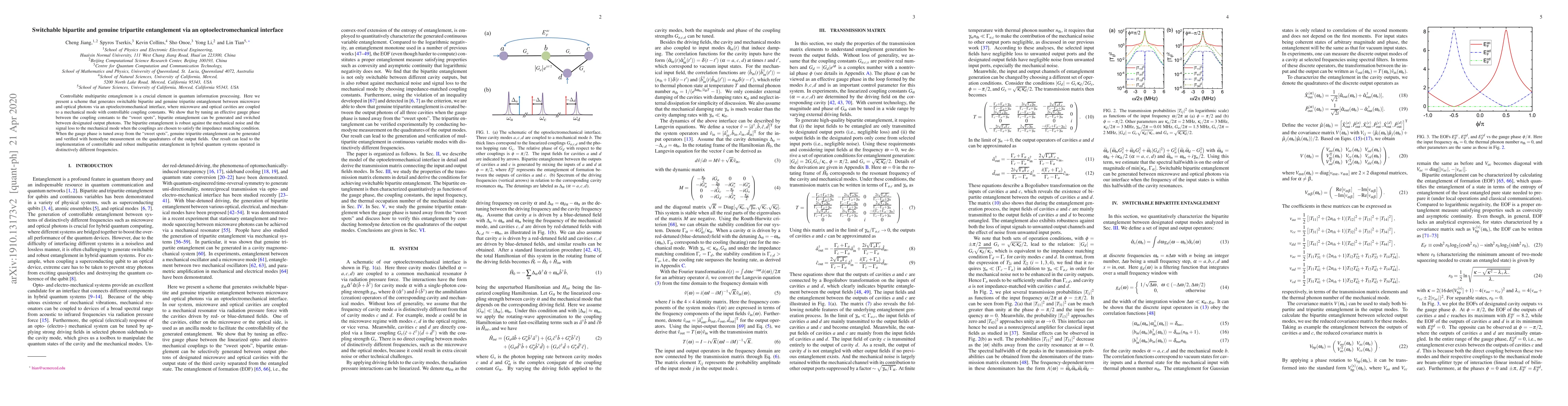 This paper presents a scheme for generating switchable bipartite and genuine tripartite entanglement between microwave and optical photons via an optoelectromechanical interface. The entanglement is robust against mechanical noise and signal loss, and can be controlled by tuning an effective gauge phase.