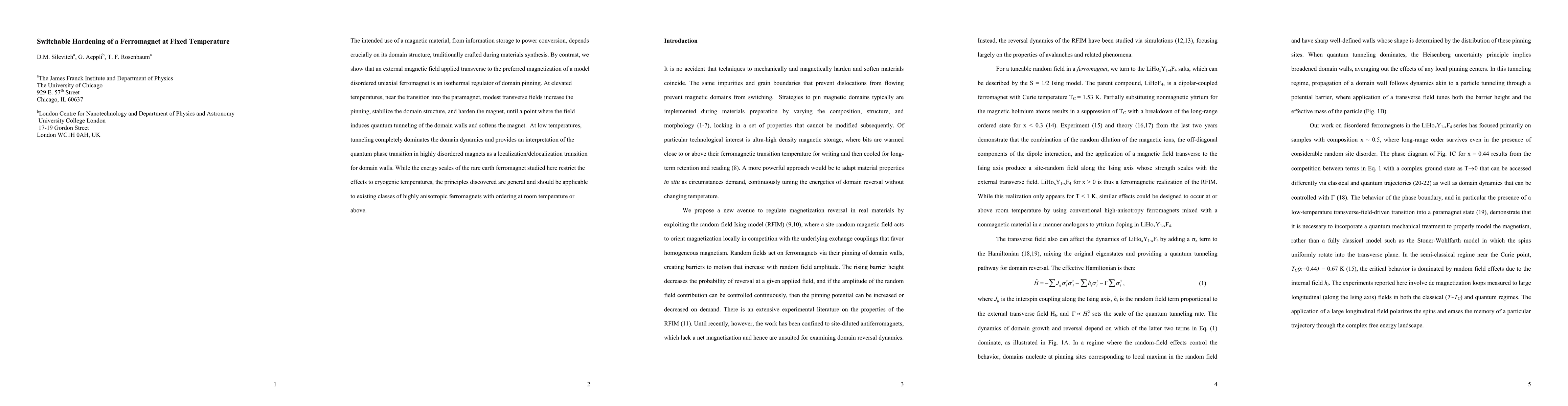 The intended use of a magnetic material, from information storage to power conversion, depends crucially on its domain structure, traditionally crafted during materials synthesis. By contrast, we show that an external magnetic field applied transverse to the preferred magnetization of a model disordered uniaxial ferromagnet is an isothermal regulator of domain pinning. At elevated temperatures, near the transition into the paramagnet, modest transverse fields increase the pinning, stabilize the domain structure, and harden the magnet, until a point where the field induces quantum tunneling of the domain walls and softens the magnet. At low temperatures, tunneling completely dominates the domain dynamics and provides an interpretation of the quantum phase transition in highly disordered magnets as a localization/delocalization transition for domain walls. While the energy scales of the rare earth ferromagnet studied here restrict the effects to cryogenic temperatures, the principles discovered are general and should be applicable to existing classes of highly anisotropic ferromagnets with ordering at room temperature or above.