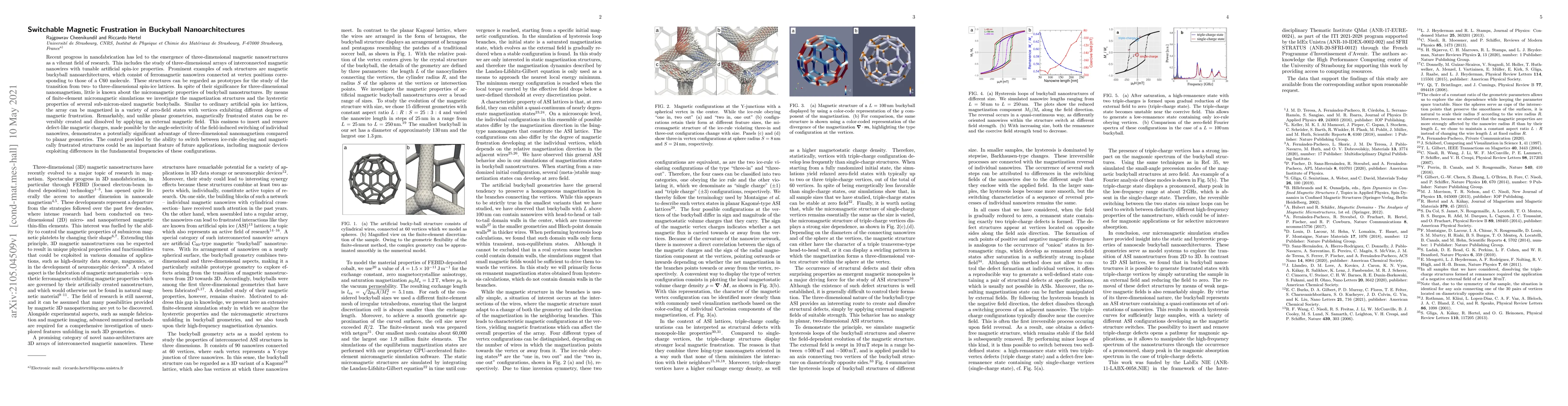 This paper investigates the magnetization and hysteretic properties of three-dimensional magnetic buckyball nanoarchitectures using micromagnetic simulations. The study reveals that these structures can exhibit switchable magnetic frustration, allowing reversible creation and dissolution of frustrated states by applying an external magnetic field, showcasing a potential advantage over planar geometries for future applications.