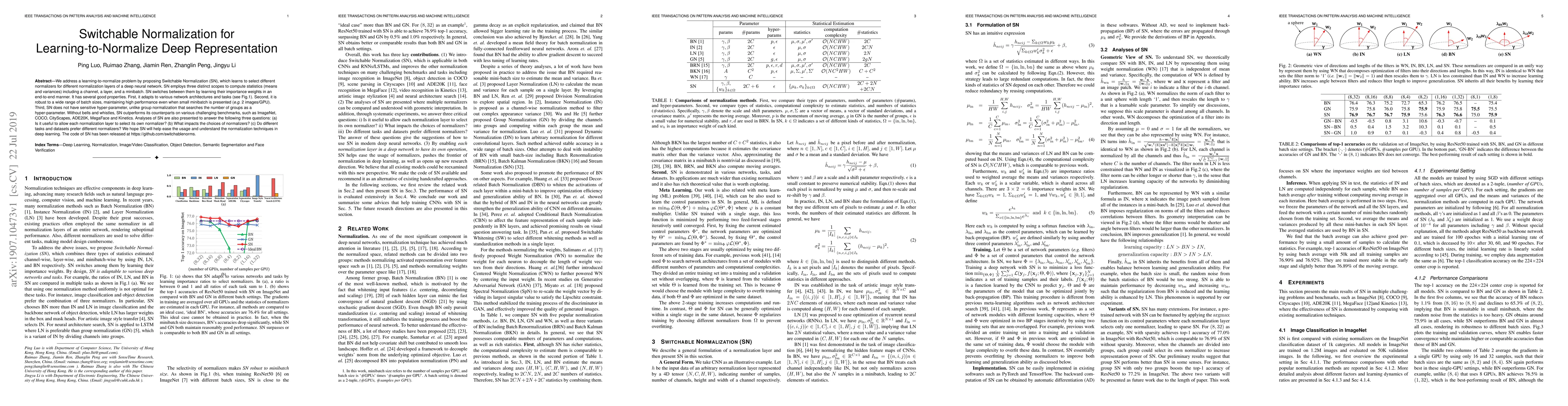 The paper proposes Switchable Normalization (SN), a method that learns to select different normalizers for different layers in a deep neural network, employing channel, layer, and minibatch scopes. SN outperforms other normalization techniques on various benchmarks, demonstrating adaptability, robustness to small batch sizes, and lack of sensitive hyperparameters.