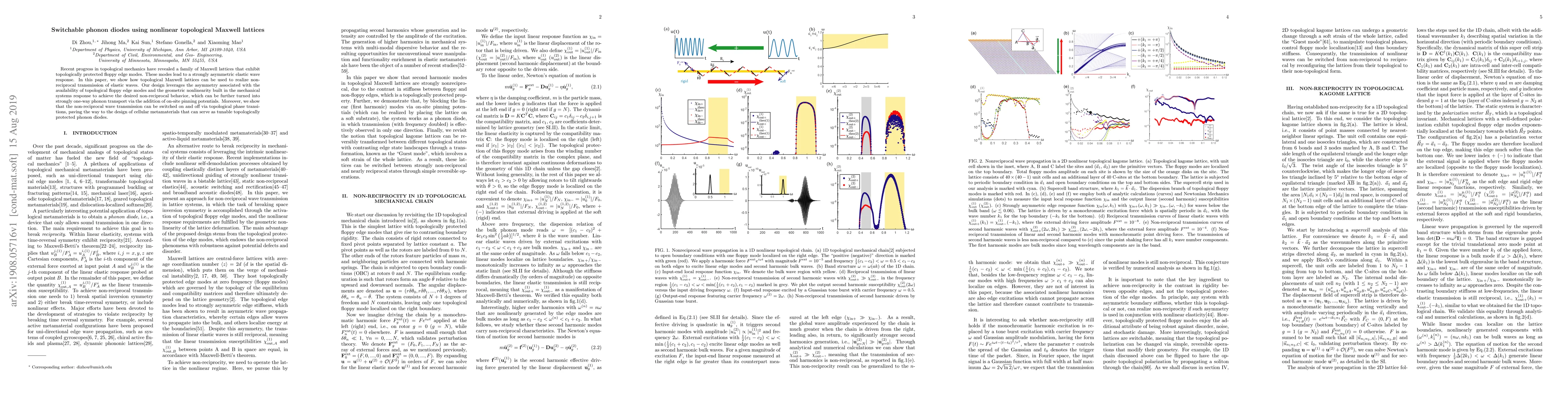 This paper demonstrates the creation of tunable phonon diodes using nonlinear topological Maxwell lattices, which exhibit asymmetric elastic wave transmission due to topologically protected floppy edge modes and geometric nonlinearity. The non-reciprocal wave transmission can be switched on and off through topological phase transitions.
