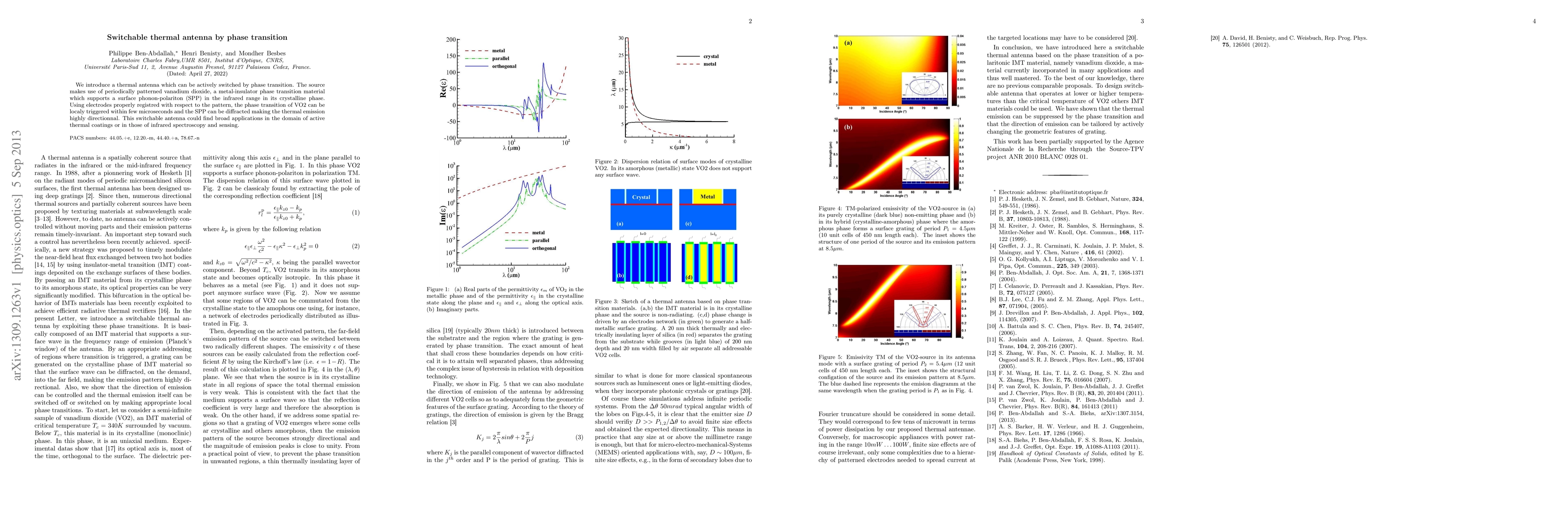 We introduce a thermal antenna which can be actively switched by phase transition. The source makes use of periodically patterned vanadium dioxide, a metal-insulator phase transition material which supports a surface phonon-polariton (SPP) in the infrared range in its crystalline phase. Using electrodes properly registred with respect to the pattern, the phase transition of VO2 can be localy triggered within few microseconds and the SPP can be diffracted making the thermal emission highly directionnal. This switchable antenna could find broad applications in the domain of active thermal coatings or in those of infrared spectroscopy and sensing.