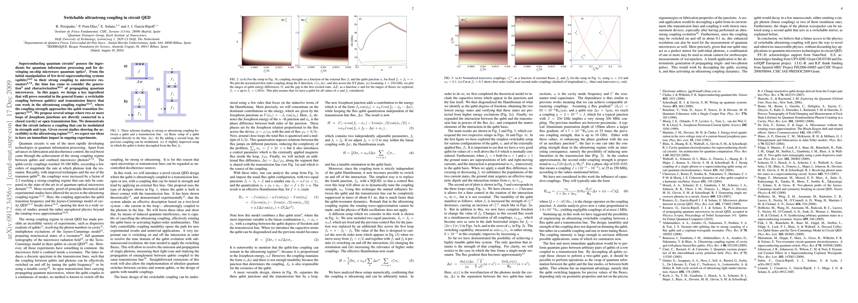 This paper introduces a design for switchable ultrastrong coupling between superconducting qubits and transmission lines in circuit quantum electrodynamics (QED), proposing setups with Josephson junctions to modulate coupling strength and type. The work aims to advance quantum information processing and on-chip microwave quantum optics.