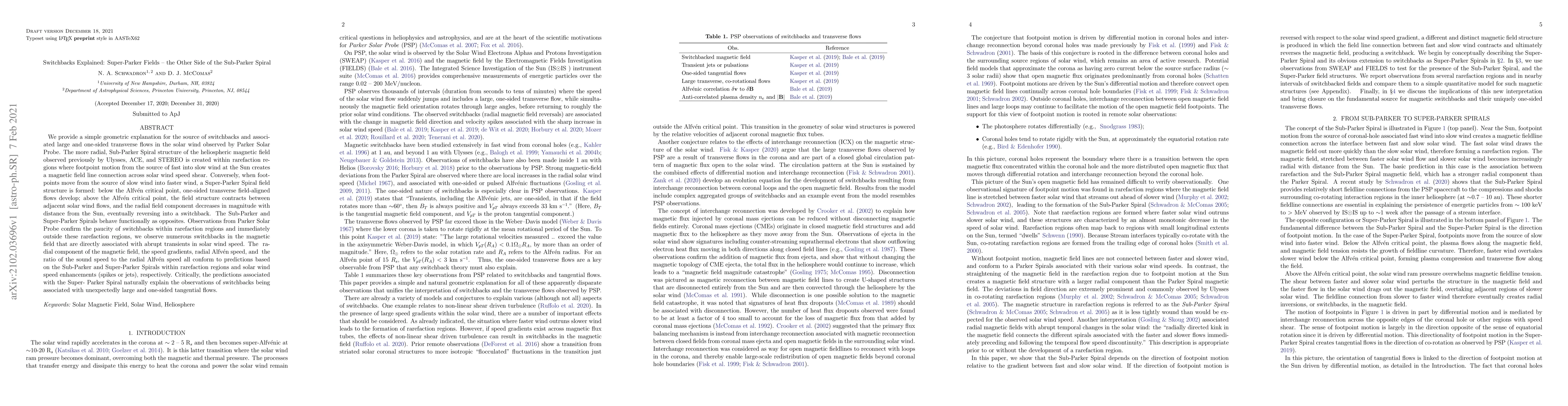 This paper explains the formation of switchbacks in the solar wind using the concept of Super-Parker fields, contrasting them with Sub-Parker Spirals. It shows that switchbacks occur when foot-points move from slow to fast wind, leading to radial field reversals, while Sub-Parker Spirals form in rarefaction regions.