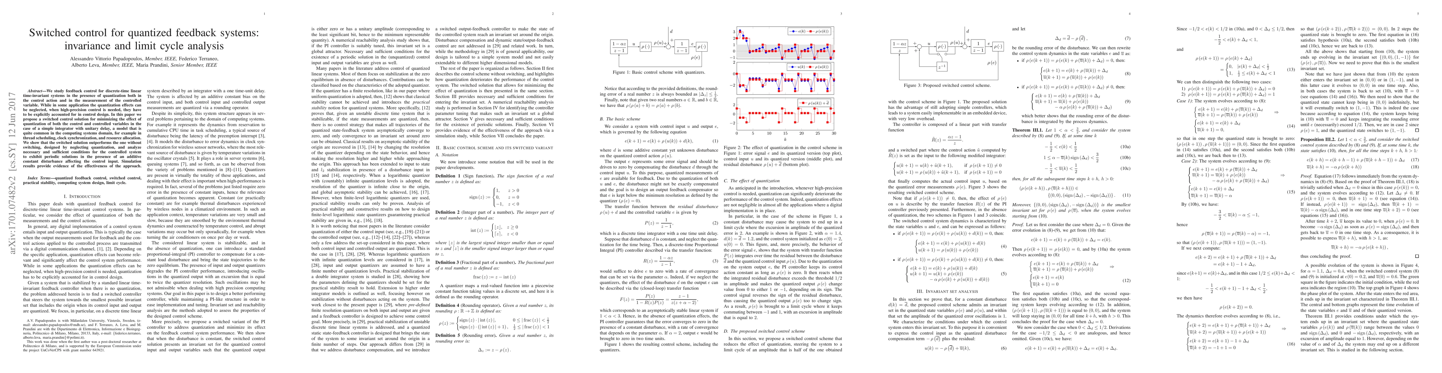 This paper proposes a switched control strategy to minimize quantization effects in feedback systems, particularly for integrators with delay, common in computing systems. The study demonstrates that the switched control method outperforms traditional methods and provides conditions for periodic solutions under disturbances.
