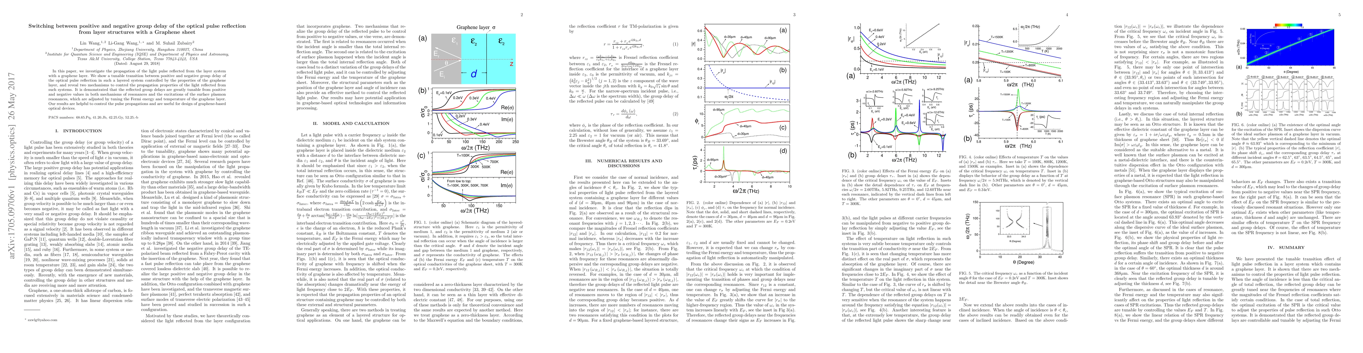 In this paper, we investigate the propagation of the light pulse reflected from the layer system with a graphene layer. We show a tunable transition between positive and negative group delay of the optical pulse reflection in such a layered system controlled by the properties of the graphene layer, and reveal two mechanisms to control the propagation properties of the light reflected from such systems. It is demonstrated that the reflected group delays are greatly tunable from positive and negative values in both mechanisms of resonances and the excitations of the surface plasmon resonances, which are adjusted by tuning the Fermi energy and temperature of the graphene layer. Our results are helpful to control the pulse propagations and are useful for design of graphene-based optical devices.