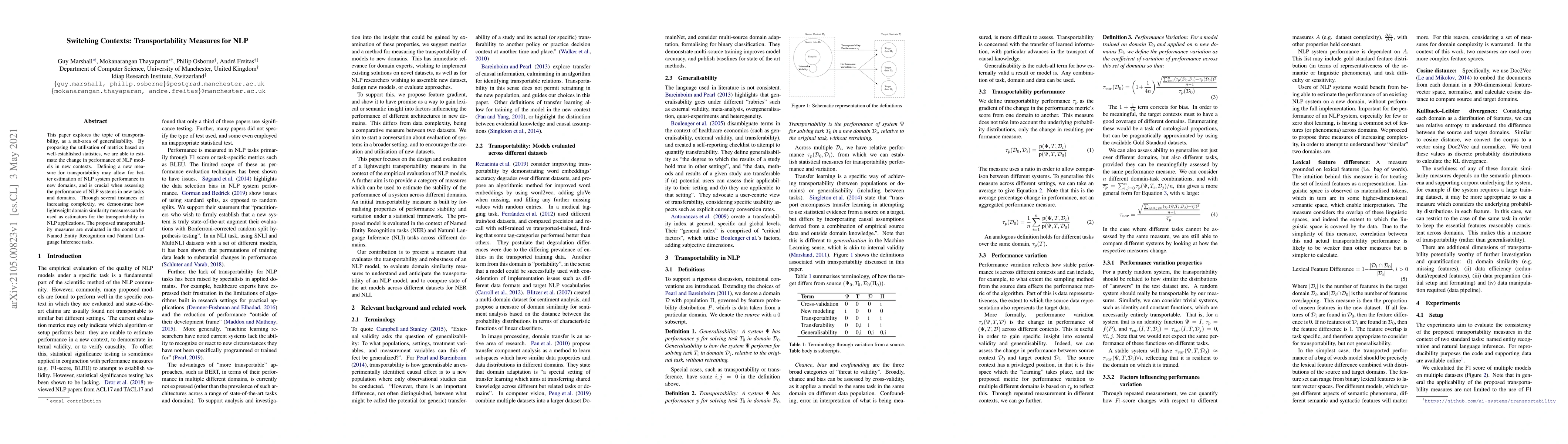 This paper explores the topic of transportability, as a sub-area of generalisability. By proposing the utilisation of metrics based on well-established statistics, we are able to estimate the change in performance of NLP models in new contexts. Defining a new measure for transportability may allow for better estimation of NLP system performance in new domains, and is crucial when assessing the performance of NLP systems in new tasks and domains. Through several instances of increasing complexity, we demonstrate how lightweight domain similarity measures can be used as estimators for the transportability in NLP applications. The proposed transportability measures are evaluated in the context of Named Entity Recognition and Natural Language Inference tasks.