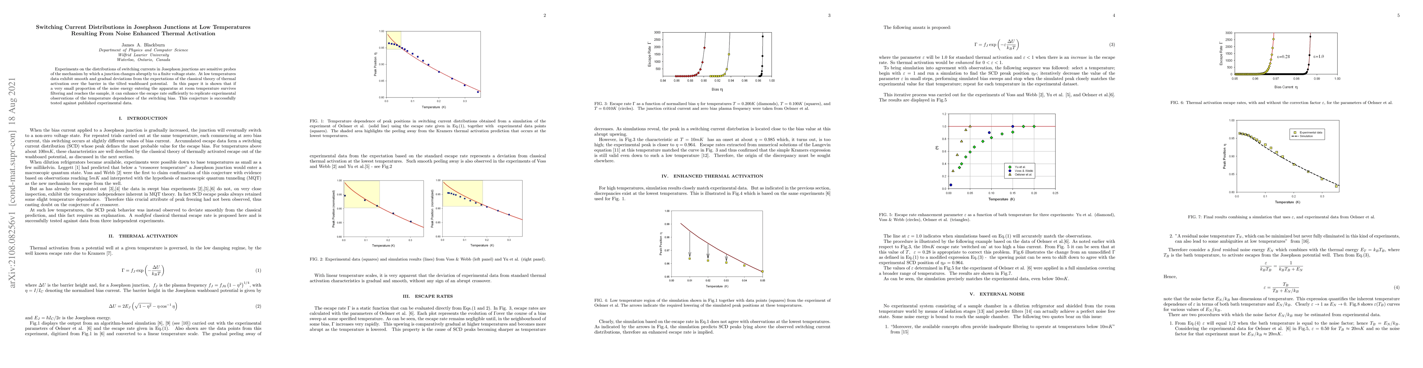 Experiments on the distributions of switching currents in Josephson junctions are sensitive probes of the mechanism by which a junction changes abruptly to a finite voltage state. At low temperatures data exhibit smooth and gradual deviations from the expectations of the classical theory of thermal activation over the barrier in the tilted washboard potential. In this paper it is shown that if a very small proportion of the noise energy entering the apparatus at room temperature survives filtering and reaches the sample, it can enhance the escape rate sufficiently to replicate experimental observations of the temperature dependence of the switching bias. This conjecture is successfully tested against published experimental data.
