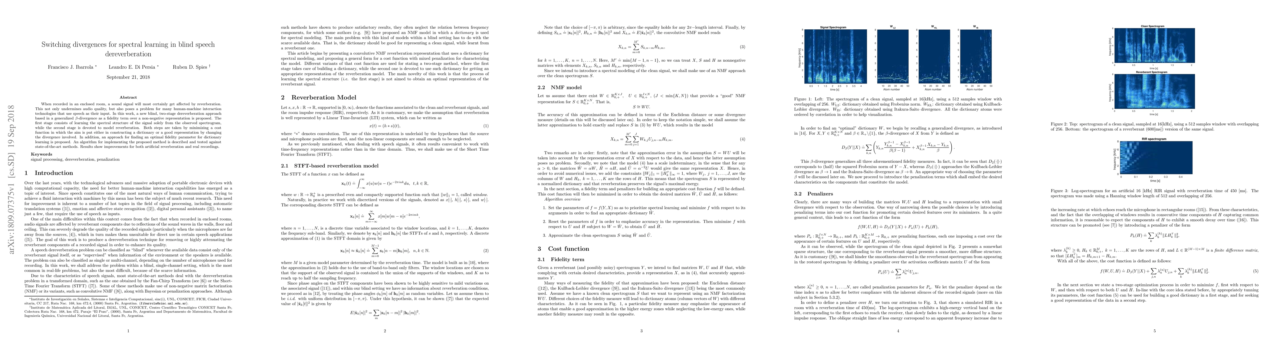 The research proposes a new blind, two-stage dereverberation approach based on a generalized β-divergence as a fidelity term over a non-negative representation. The method involves learning the spectral structure of the signal in the first stage and modeling reverberation in the second stage by minimizing a cost function, which changes the divergence involved to either construct a dictionary or a good representation.