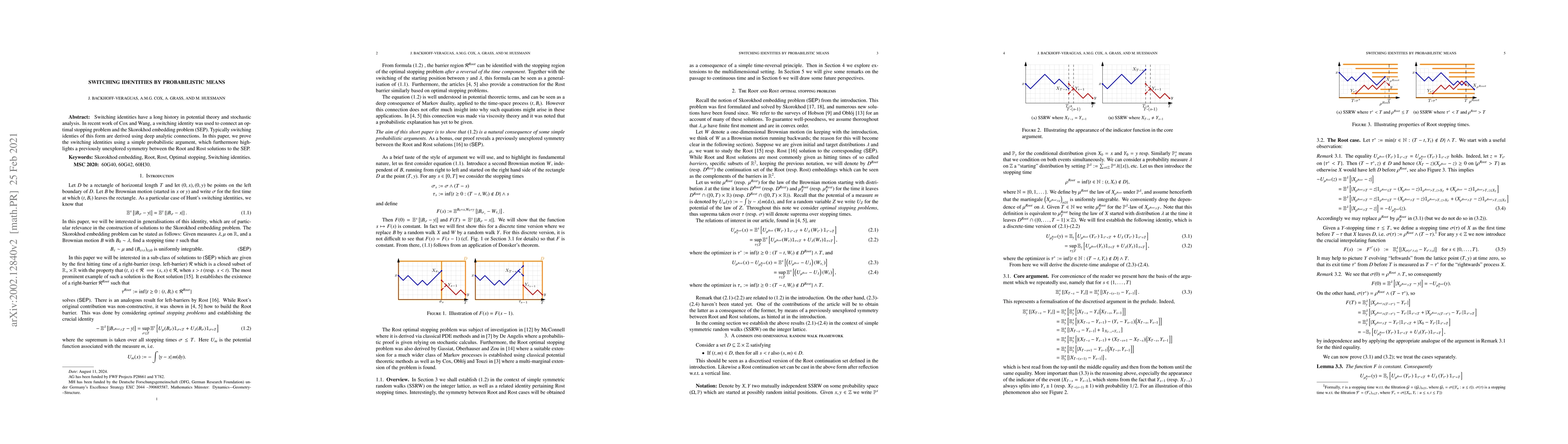 Researchers prove switching identities in stochastic analysis using probabilistic means, highlighting a previously unexplored symmetry between two solution approaches to the Skorokhod embedding problem.