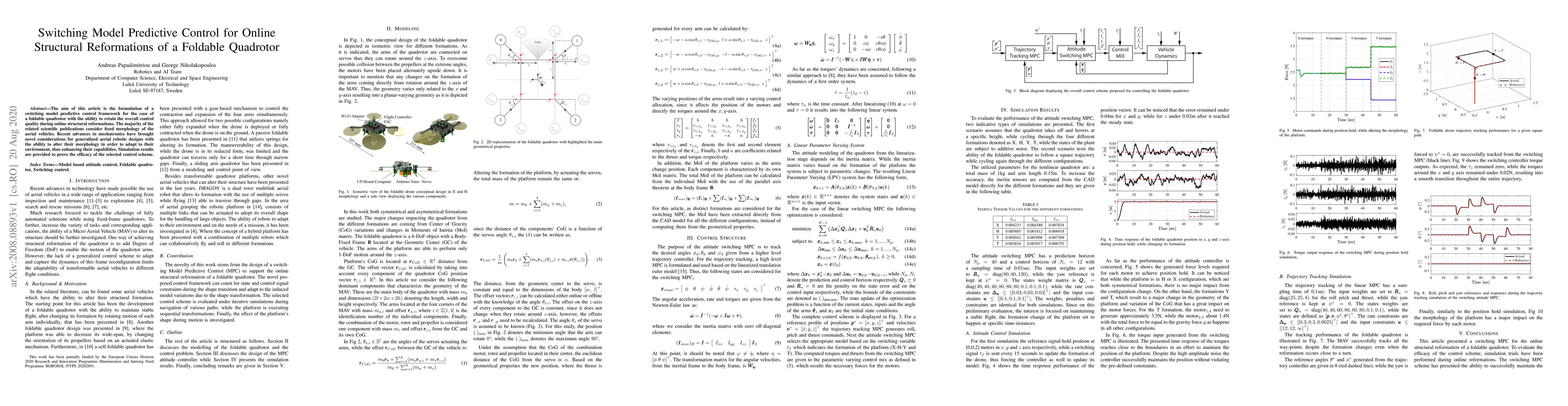 Researchers developed a model predictive control framework for foldable quadrotors that can adapt to changing environments, maintaining control quality during structural reformations. Simulation results demonstrate the efficacy of the approach, which addresses limitations in traditional fixed-morphology aerial vehicle designs.
