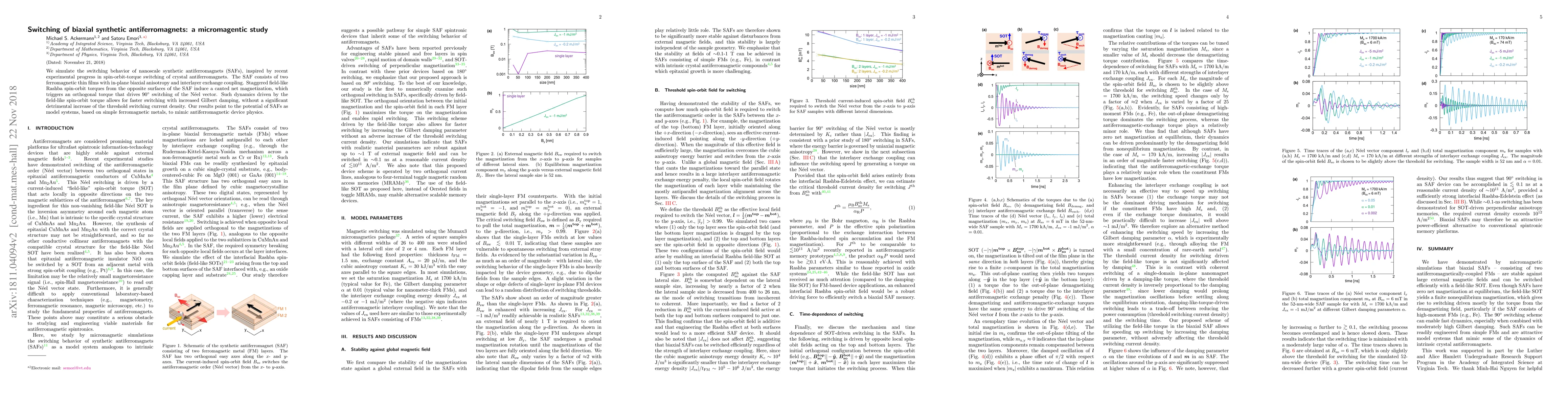 This study simulates the switching behavior of nanoscale synthetic antiferromagnets (SAFs) using micromagnetic models, revealing that field-like spin-orbit torques can induce rapid 90° switching of the Néel vector without significantly increasing the threshold switching current density, suggesting SAFs as promising candidates for antiferromagnetic device applications.