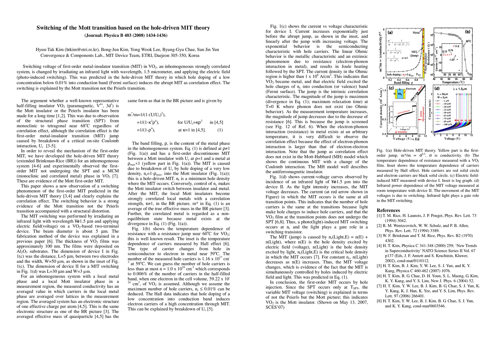 This paper demonstrates that the switching voltage of a metal-insulator transition in VO_2 can be altered via photo-induced switching using infrared light and electric fields, aligning with the hole-driven MIT theory, which attributes the transition to hole doping and correlation effects rather than a Peierls transition.