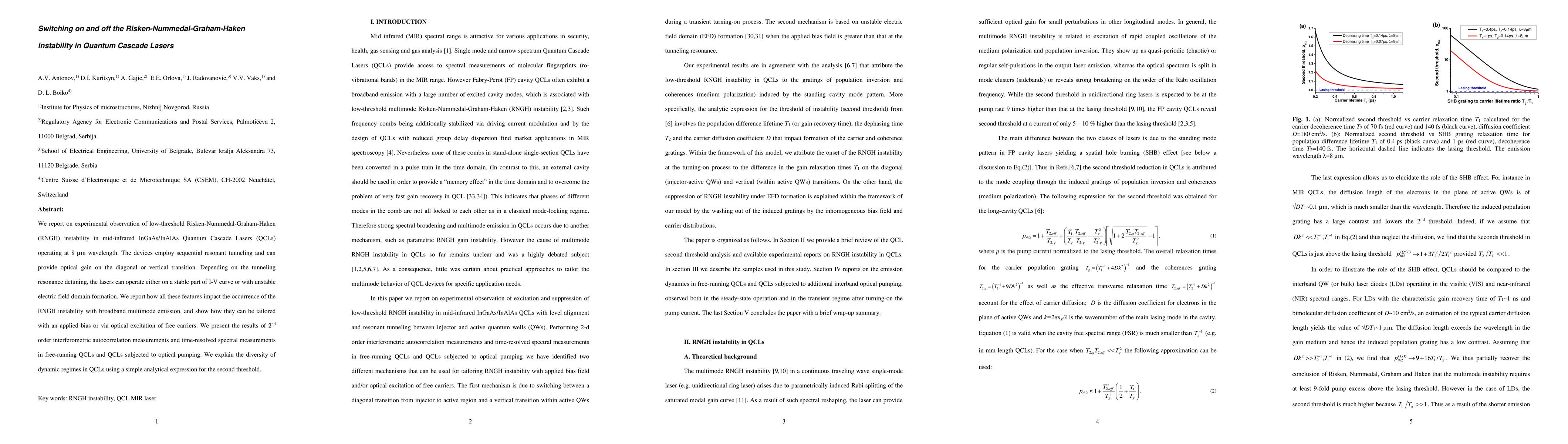 This paper reports on the experimental observation of low-threshold Risken-Nummedal-Graham-Haken instability in mid-infrared Quantum Cascade Lasers, demonstrating how the instability can be controlled via tunneling resonance detuning and applied bias. The study uses interferometric and spectral measurements to analyze dynamic regimes and provides an analytical expression for the second threshold.