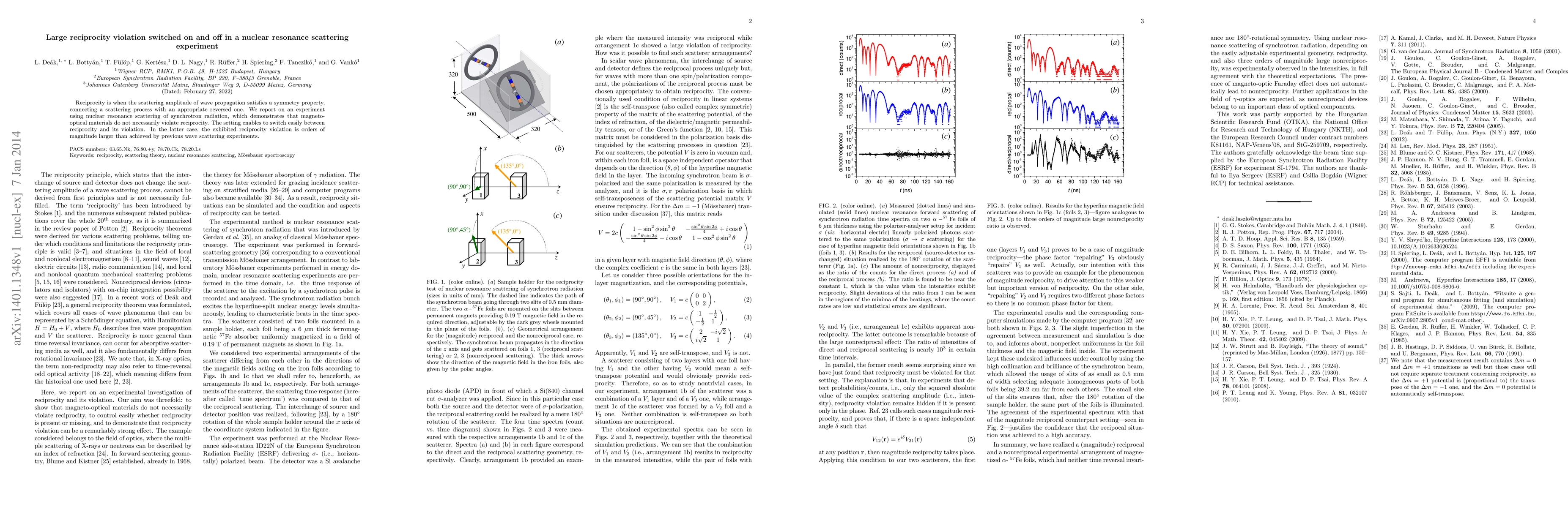 Reciprocity is when the scattering amplitude of wave propagation satisfies a symmetry property, connecting a scattering process with an appropriate reversed one. We report on an experiment using nuclear resonance scattering of synchrotron radiation, which demonstrates that magneto-optical materials do not necessarily violate reciprocity. The setting enables to switch easily between reciprocity and its violation. In the latter case, the exhibited reciprocity violation is orders of magnitude larger than achieved by previous wave scattering experiments.