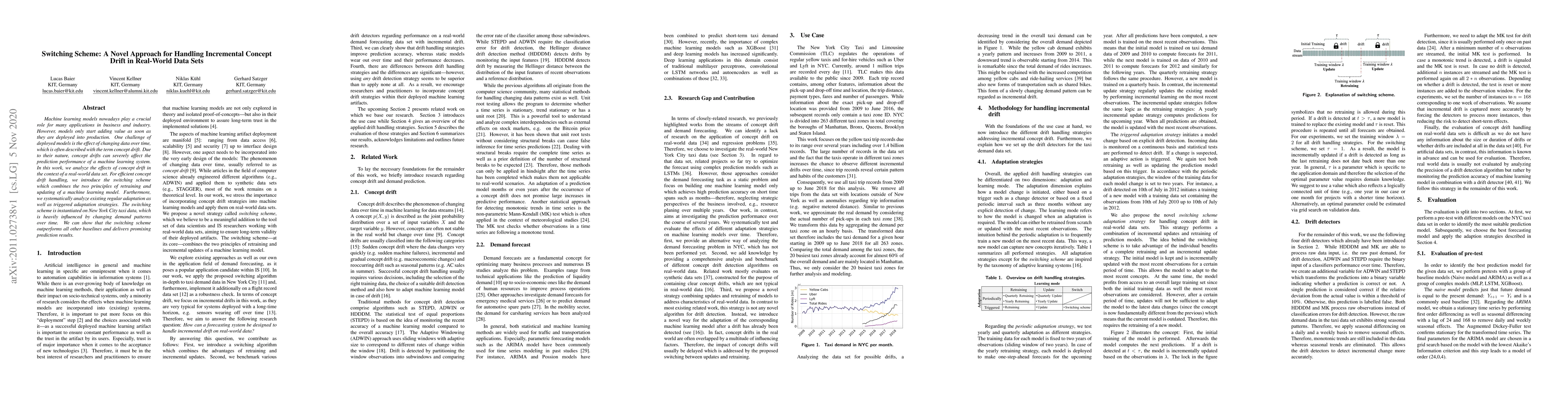 Machine learning models nowadays play a crucial role for many applications in business and industry. However, models only start adding value as soon as they are deployed into production. One challenge of deployed models is the effect of changing data over time, which is often described with the term concept drift. Due to their nature, concept drifts can severely affect the prediction performance of a machine learning system. In this work, we analyze the effects of concept drift in the context of a real-world data set. For efficient concept drift handling, we introduce the switching scheme which combines the two principles of retraining and updating of a machine learning model. Furthermore, we systematically analyze existing regular adaptation as well as triggered adaptation strategies. The switching scheme is instantiated on New York City taxi data, which is heavily influenced by changing demand patterns over time. We can show that the switching scheme outperforms all other baselines and delivers promising prediction results.