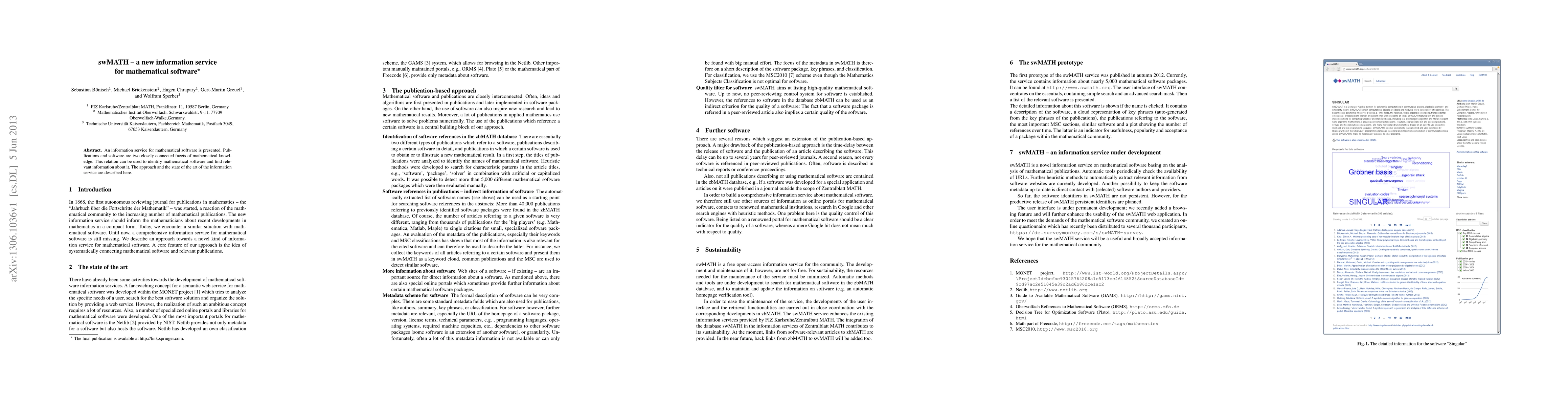 An information service for mathematical software is presented. Publications and software are two closely connected facets of mathematical knowledge. This relation can be used to identify mathematical software and find relevant information about it. The approach and the state of the art of the information service are described here.