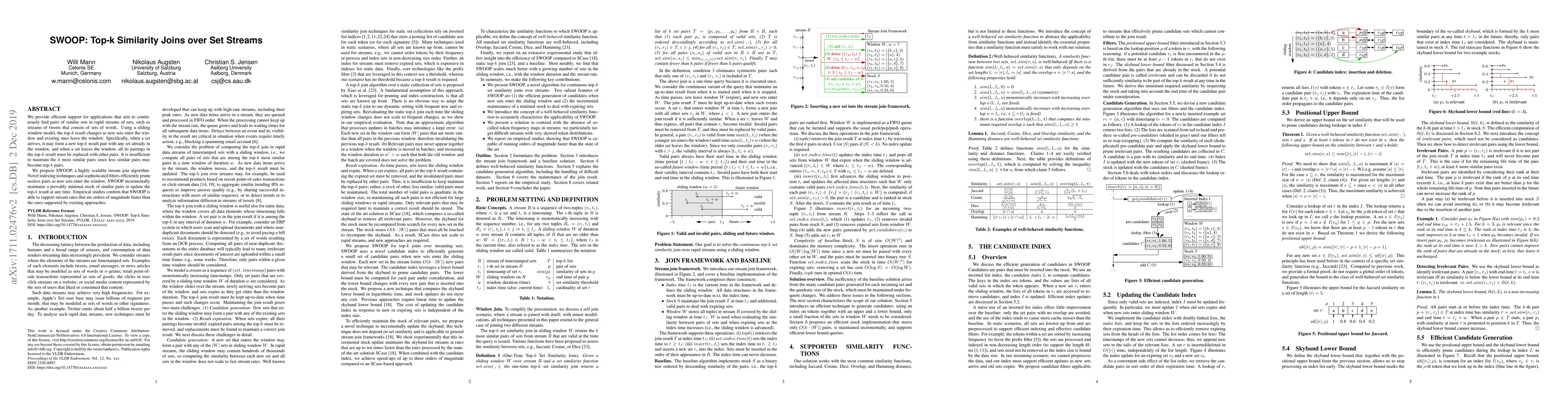 The research introduces SWOOP, a highly scalable stream join algorithm for efficiently maintaining top-k most similar pairs from rapid set streams, like Twitter trends, using a sliding window model.