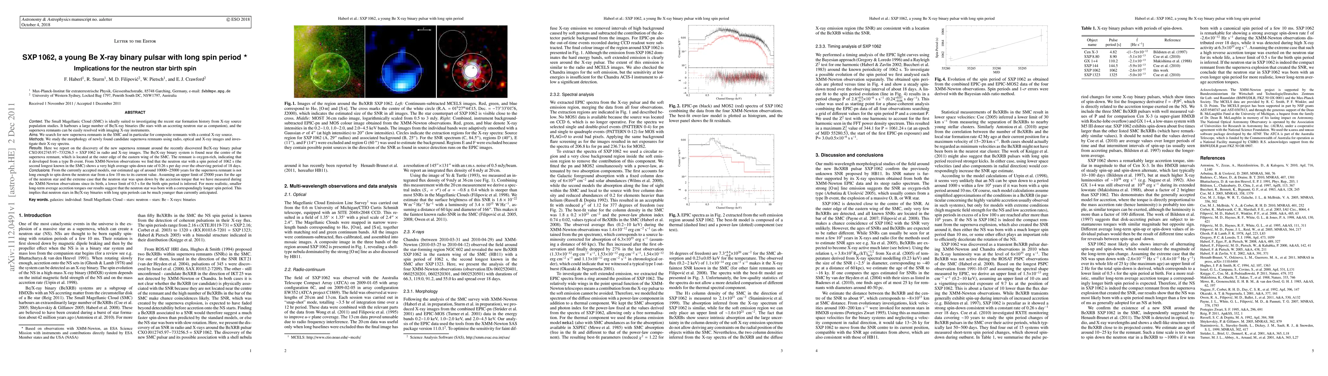The paper reports the discovery of a new supernova remnant around the Be/X-ray binary pulsar SXP 1062 in the Small Magellanic Cloud, revealing that the neutron star has a spin period of 1062 seconds and a high spin-down rate. The findings suggest that the neutron star likely had a birth spin period of at least 0.5 seconds, indicating that neutron stars with long spin periods may be younger than previously thought.