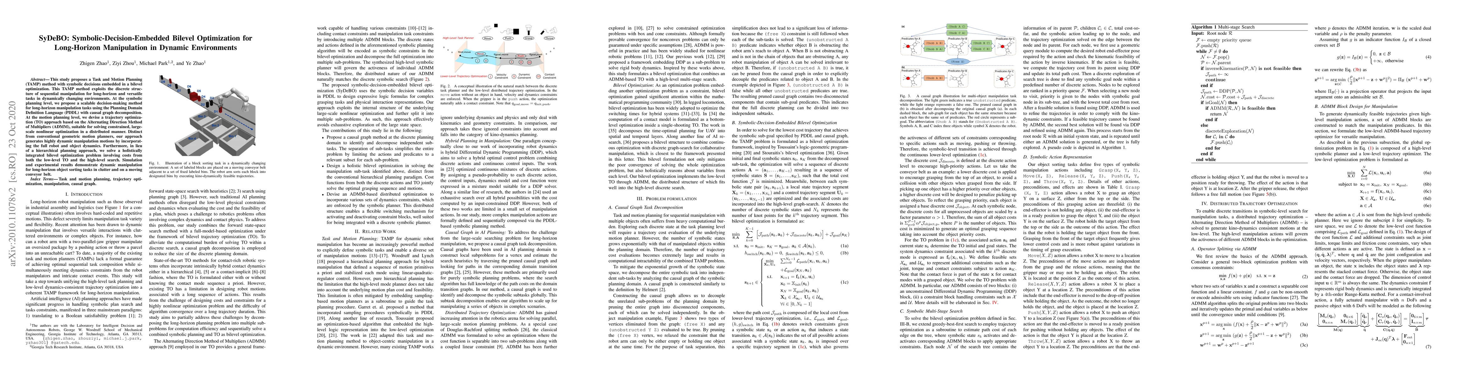 This paper introduces SyDeBO, a bilevel optimization framework for long-horizon manipulation planning in dynamic environments, combining symbolic decision-making with trajectory optimization via ADMM, and demonstrating its effectiveness through dynamic object sorting tasks.