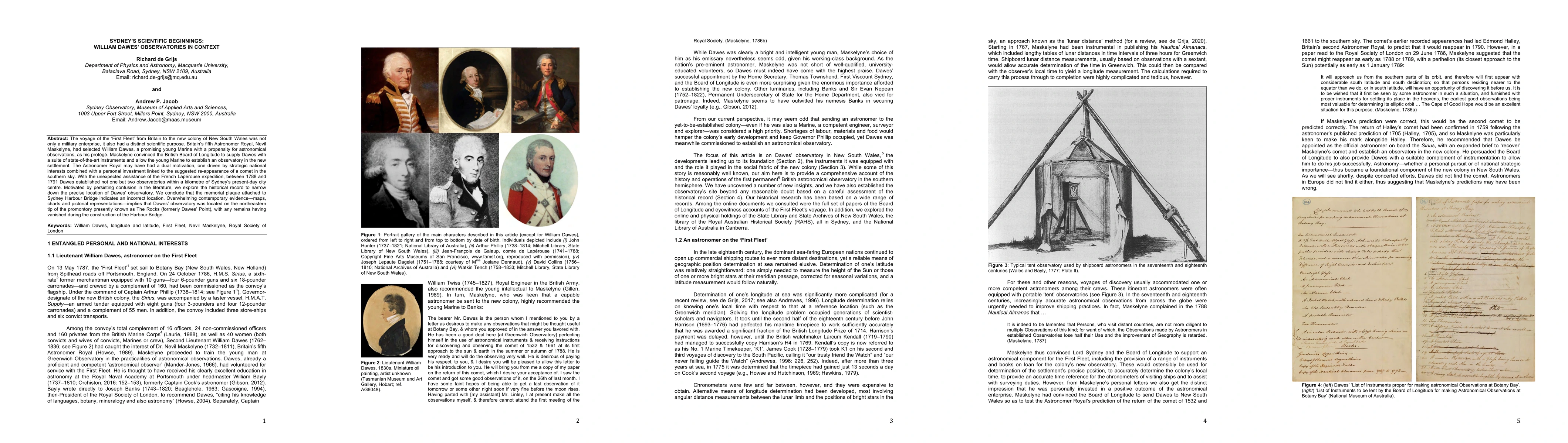 The voyage of the "First Fleet" from Britain to the new colony of New South Wales was not only a military enterprise, it also had a distinct scientific purpose. Britain's fifth Astronomer Royal, Nevil Maskelyne, had selected William Dawes, a promising young Marine with a propensity for astronomical observations, as his prot\'eg\'e. Maskelyne convinced the British Board of Longitude to supply Dawes with a suite of state-of-the-art instruments and allow the young Marine to establish an observatory in the new settlement. The Astronomer Royal may have had a dual motivation, one driven by strategic national interests combined with a personal investment linked to the suggested re-appearance of a comet in the southern sky. With the unexpected assistance of the French Lap\'erouse expedition, between 1788 and 1791 Dawes established not one but two observatories within a kilometre of Sydney's present-day city centre. Motivated by persisting confusion in the literature, we explore the historical record to narrow down the precise location of Dawes' observatory. We conclude that the memorial plaque attached to Sydney Harbour Bridge indicates an incorrect location. Overwhelming contemporary evidence -- maps, charts and pictorial representations -- implies that Dawes' observatory was located on the northeastern tip of the promontory presently known as The Rocks (formerly Dawes' Point), with any remains having vanished during the construction of the Harbour Bridge.
