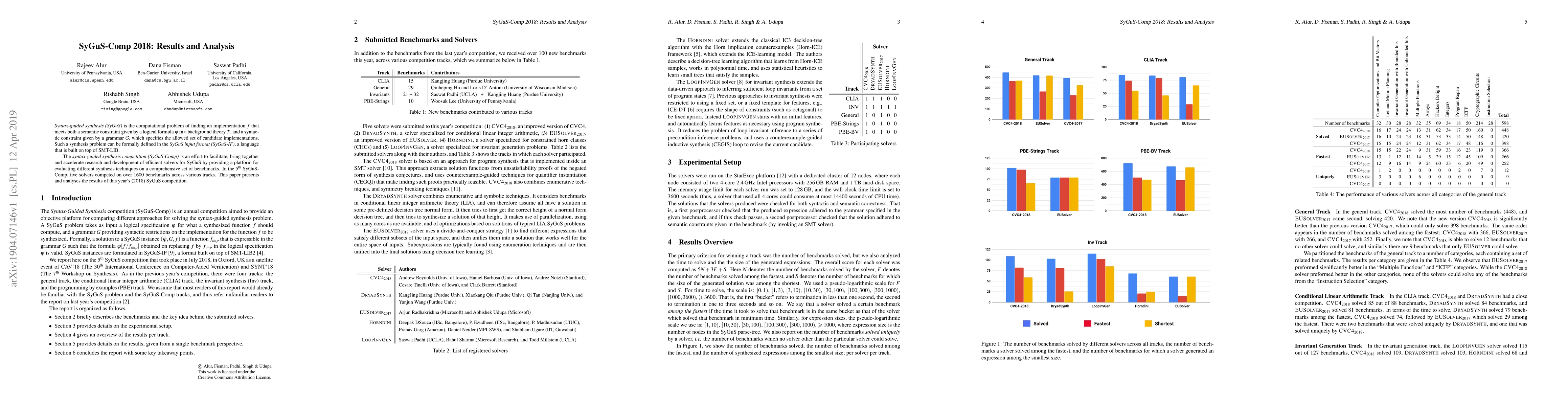 Syntax-guided synthesis (SyGuS) is the computational problem of finding an implementation $f$ that meets both a semantic constraint given by a logical formula $\phi$ in a background theory $\mathbb{T}$, and a syntactic constraint given by a grammar $G$, which specifies the allowed set of candidate implementations. Such a synthesis problem can be formally defined in the SyGuS input format (SyGuS-IF), a language that is built on top of SMT-LIB. The Syntax-Guided Synthesis competition (SyGuS-Comp) is an effort to facilitate, bring together and accelerate research and development of efficient solvers for SyGuS by providing a platform for evaluating different synthesis techniques on a comprehensive set of benchmarks. In the 5th SyGuS-Comp, five solvers competed on over 1600 benchmarks across various tracks. This paper presents and analyses the results of this year's (2018) SyGuS competition.