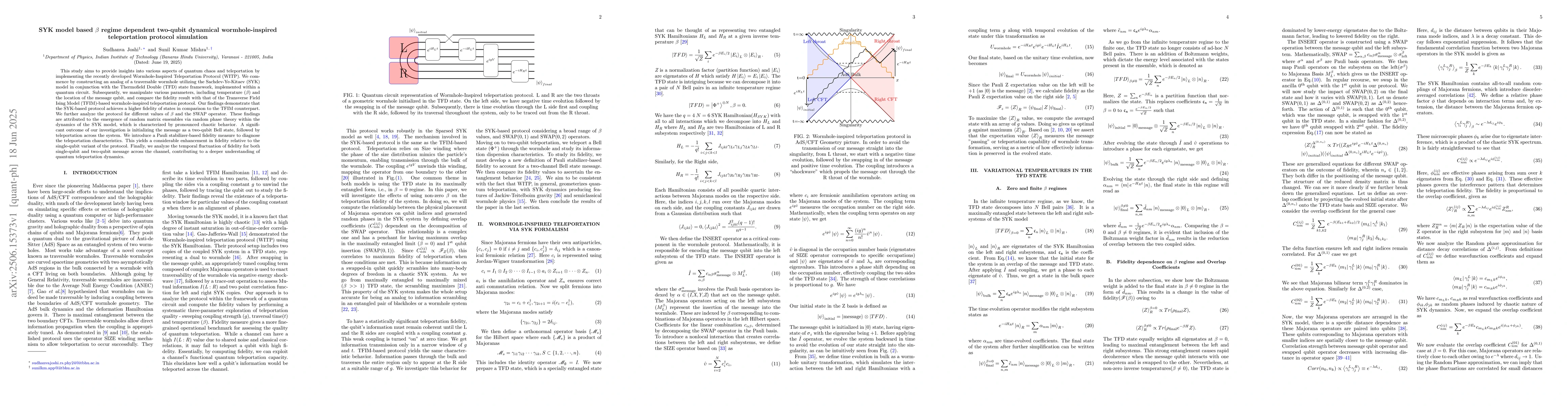 The research employed a combination of theoretical models and experimental techniques to investigate wormhole-inspired quantum teleportation.