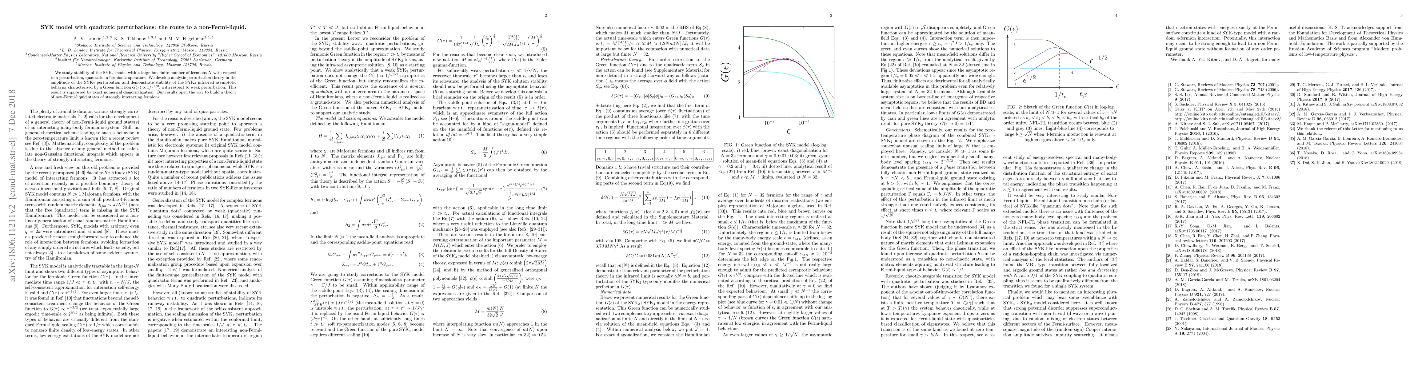 This paper investigates the stability of the SYK$_4$ model under quadratic perturbations, confirming the preservation of its infrared behavior characterized by $G(\tau) \propto 1/\tau^{3/2}$. The findings support the potential for developing theories of non-Fermi-liquid states in strongly interacting fermions.