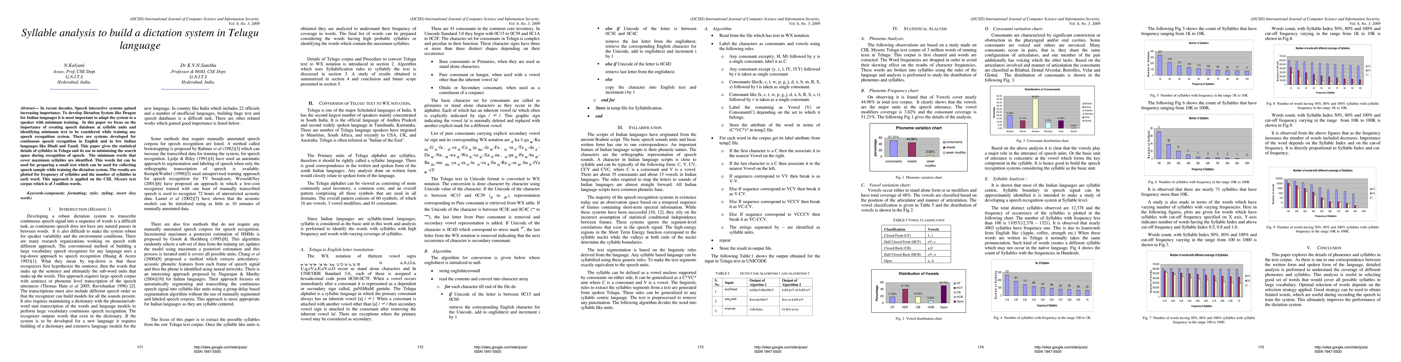 This paper explores the development of a dictation system for Telugu by analyzing syllable units to minimize training requirements. It identifies key syllables and minimal words that cover most syllables, aiming to reduce the search space in speech recognition, using the CIIL Mysore text corpus.
