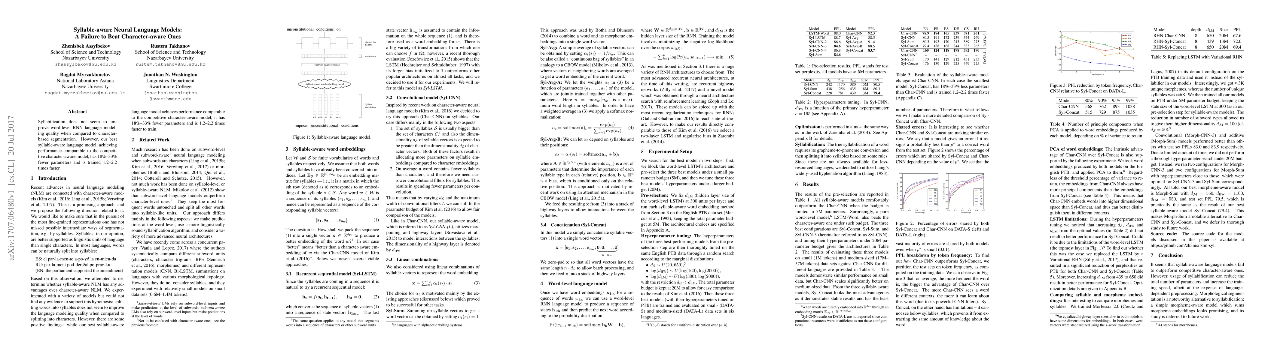 This paper finds that syllabification does not enhance word-level RNN language modeling over character-based models, despite the syllable-aware model having fewer parameters and faster training times. Character-aware models remain superior in performance.