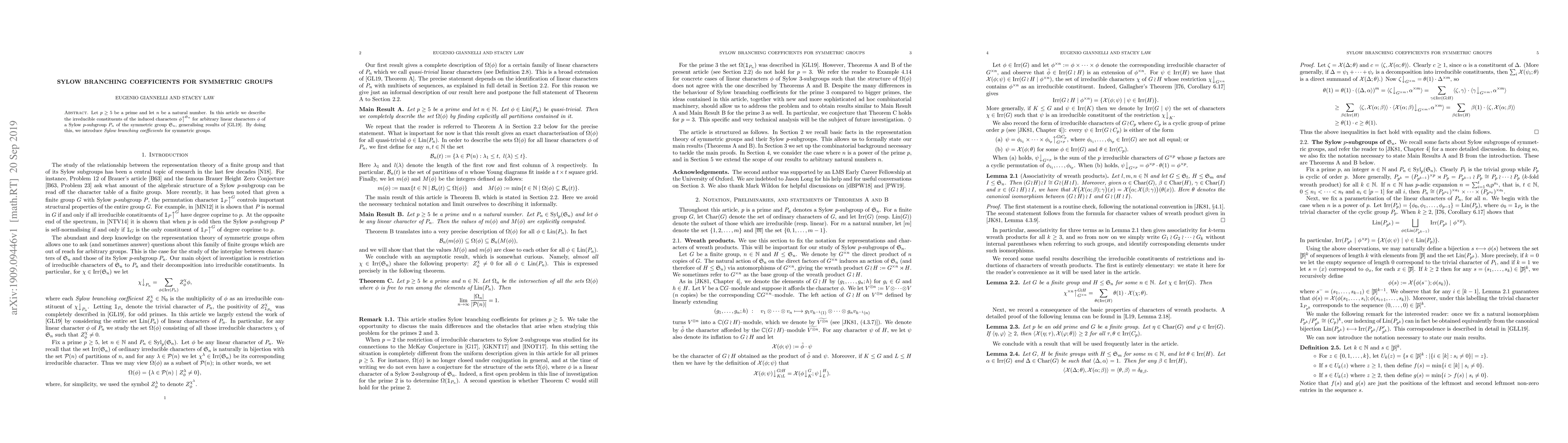The paper formally defines and analyzes Sylow branching coefficients, extending previous work to a broader class of characters and providing a comprehensive description of their constituents.