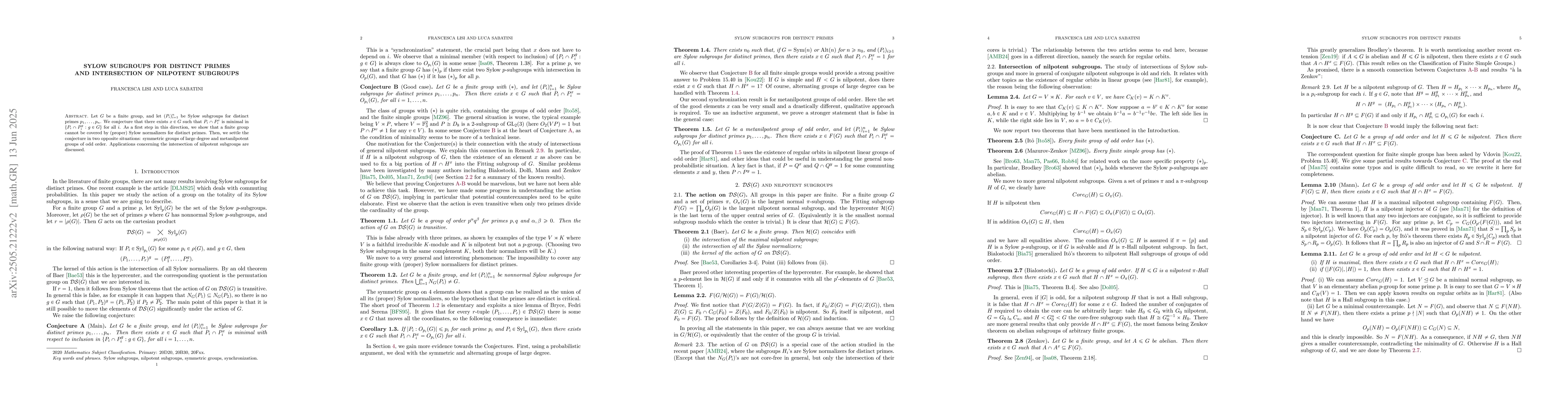 The work presents an original conjecture and partial proofs, extending existing knowledge on Sylow subgroups and their intersections, with discussions on nilpotent subgroup intersections.