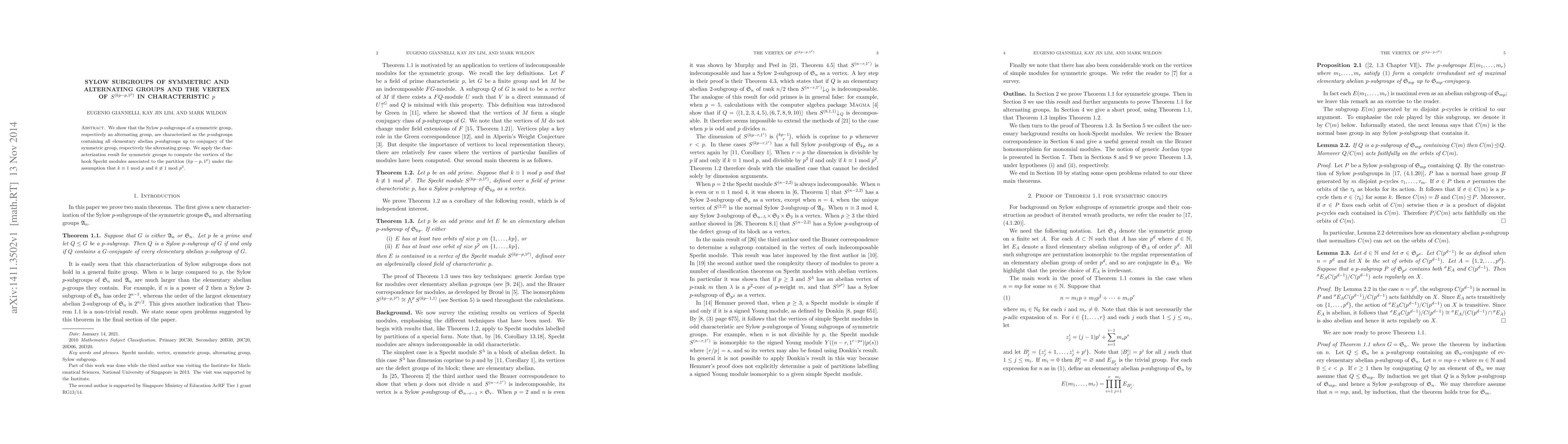 This paper characterizes the Sylow $p$-subgroups of symmetric and alternating groups as those containing all elementary abelian $p$-subgroups. It also computes the vertices of hook Specht modules associated with the partition $(kp-p,1^p)$ in characteristic $p$ under specific congruence conditions on $k$.