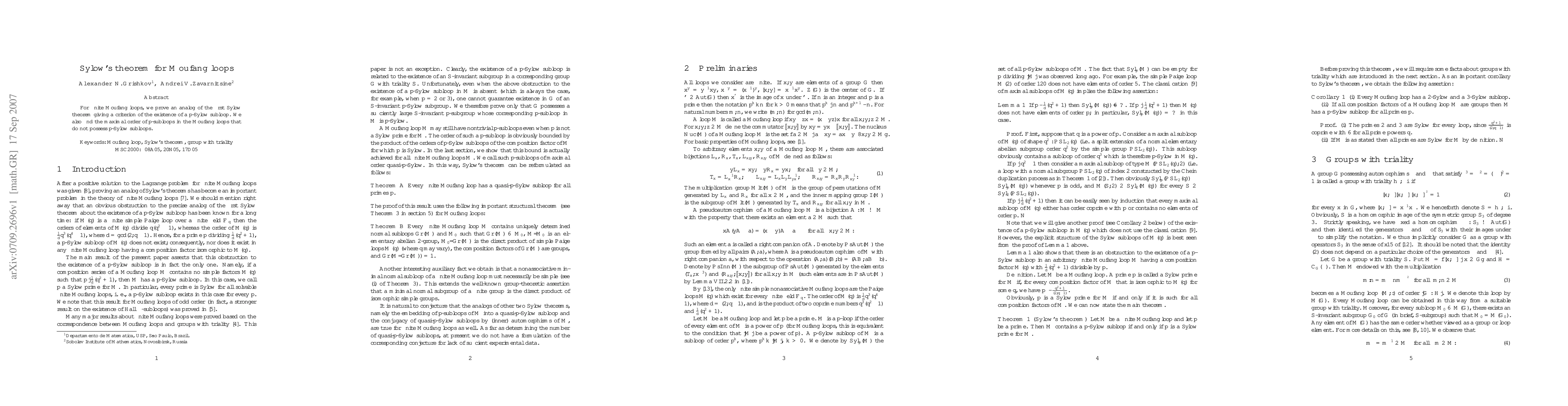 This paper proves an analog of Sylow's first theorem for finite Moufang loops, establishing conditions for the existence of p-Sylow subloops and determining the maximal order of p-subloops in those that lack such subloops.