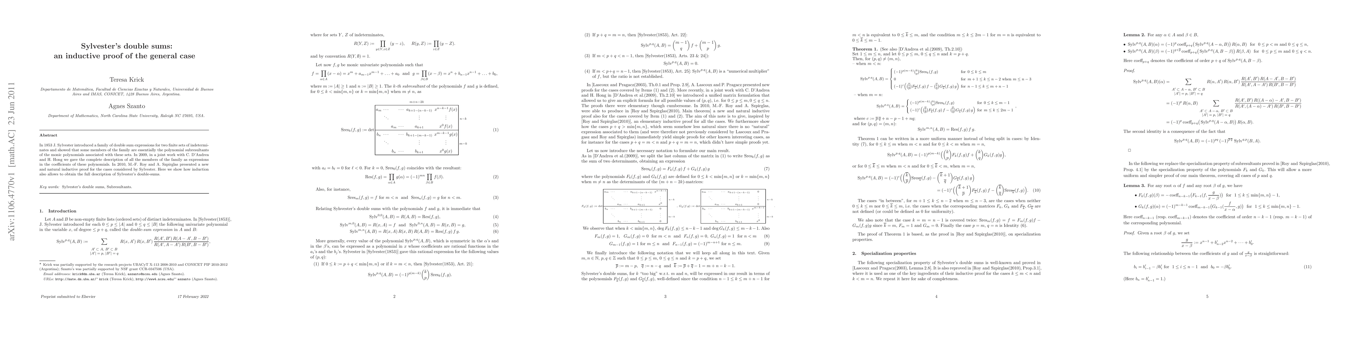 Researchers prove a general case for Sylvester's double sums using inductive proof, providing a comprehensive description of the expressions.