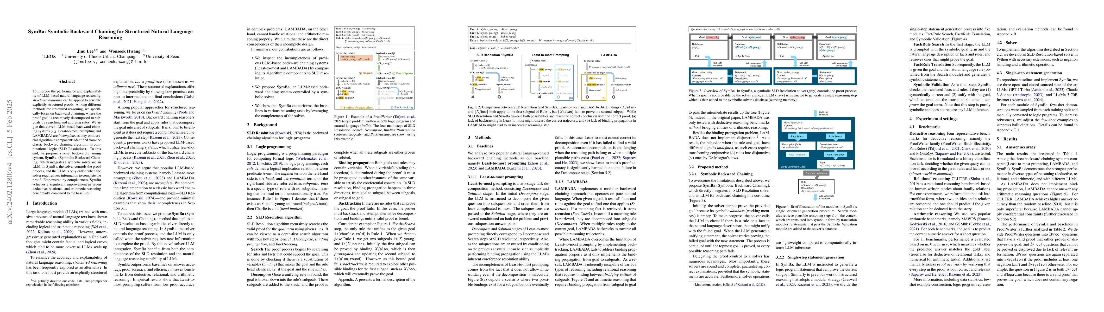 SymBa (Symbolic Backward Chaining) integrates a symbolic top-down solver with a Large Language Model to improve multi-step reasoning, achieving better performance, proof faithfulness, and efficiency compared to traditional backward chaining methods. This hybrid approach enhances reasoning tasks across various benchmarks.