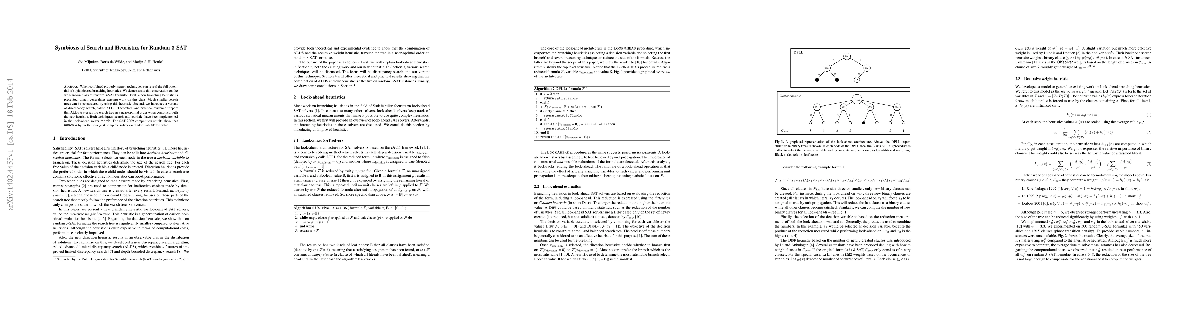 When combined properly, search techniques can reveal the full potential of sophisticated branching heuristics. We demonstrate this observation on the well-known class of random 3-SAT formulae. First, a new branching heuristic is presented, which generalizes existing work on this class. Much smaller search trees can be constructed by using this heuristic. Second, we introduce a variant of discrepancy search, called ALDS. Theoretical and practical evidence support that ALDS traverses the search tree in a near-optimal order when combined with the new heuristic. Both techniques, search and heuristic, have been implemented in the look-ahead solver march. The SAT 2009 competition results show that march is by far the strongest complete solver on random k-SAT formulae.