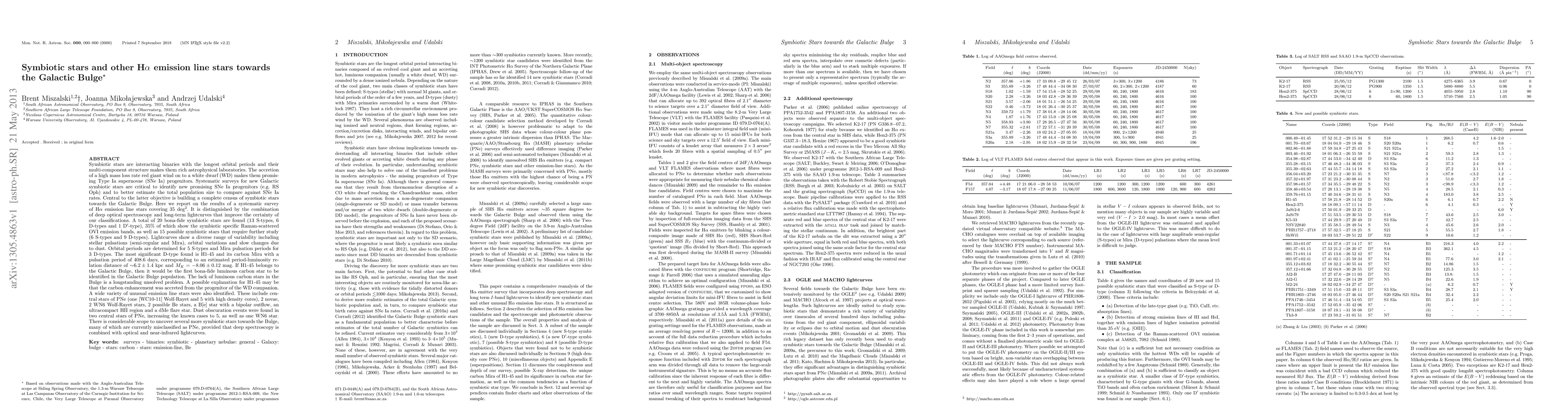 This paper reports on a systematic survey identifying 20 bona-fide symbiotic stars and 15 possible candidates towards the Galactic Bulge, using deep optical spectroscopy and long-term lightcurves. The most significant D-type star, H1-45, potentially resolves the longstanding problem of the lack of luminous carbon stars in the Bulge.