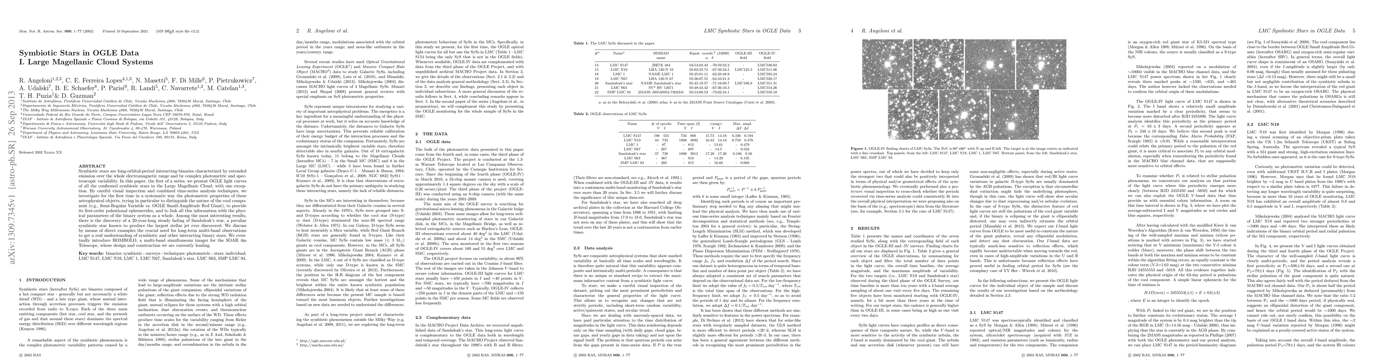 Symbiotic stars are long-orbital-period interacting-binaries characterized by extended emission over the whole electromagnetic range and by complex photometric and spectroscopic variability. In this paper, the first of a series, we present OGLE light curves of all the confirmed symbiotic stars in the Large Magellanic Cloud, with one exception. By careful visual inspection and combined time-series analysis techniques, we investigate for the first time in a systematic way the photometric properties of these astrophysical objects, trying in particular to distinguish the nature of the cool component (e.g., Semi-Regular Variable vs. OGLE Small-Amplitude Red Giant), to provide its first-order pulsational ephemerides, and to link all this information with the physical parameters of the binary system as a whole. Among the most interesting results, there is the discovery of a 20-year-long steady fading of Sanduleak's star, a peculiar symbiotic star known to produce the largest stellar jet ever discovered. We discuss by means of direct examples the crucial need for long-term multi-band observations to get a real understanding of symbiotic and other interacting binary stars. We eventually introduce BOMBOLO, a multi-band simultaneous imager for the SOAR 4m Telescope, whose design and construction we are currently leading.