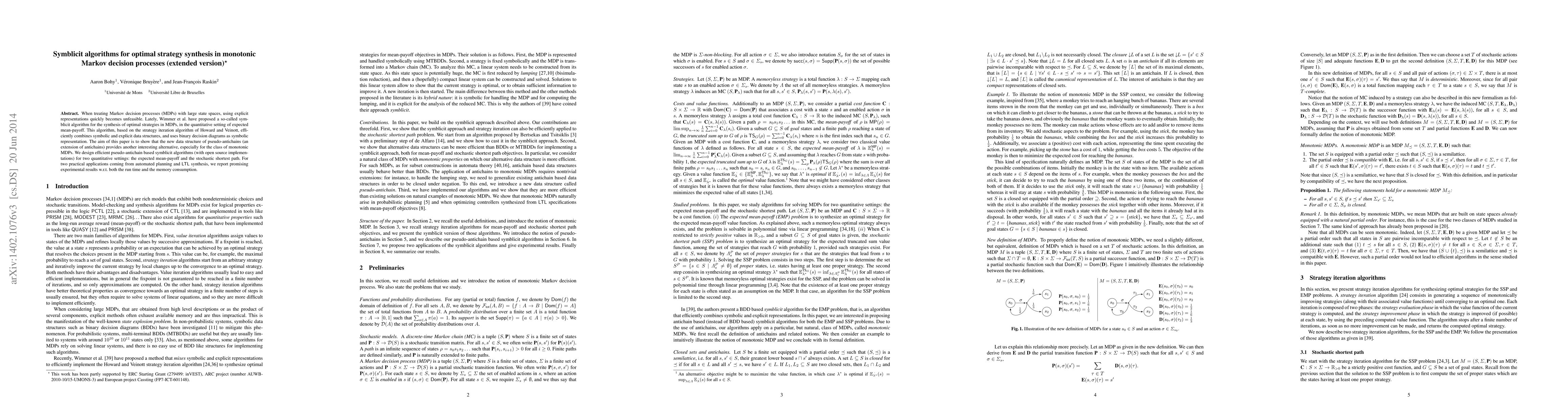 This paper proposes pseudo-antichain based symblicit algorithms for optimal strategy synthesis in monotonic Markov decision processes, demonstrating efficiency in expected mean-payoff and stochastic shortest path settings, with promising experimental results in terms of runtime and memory usage.