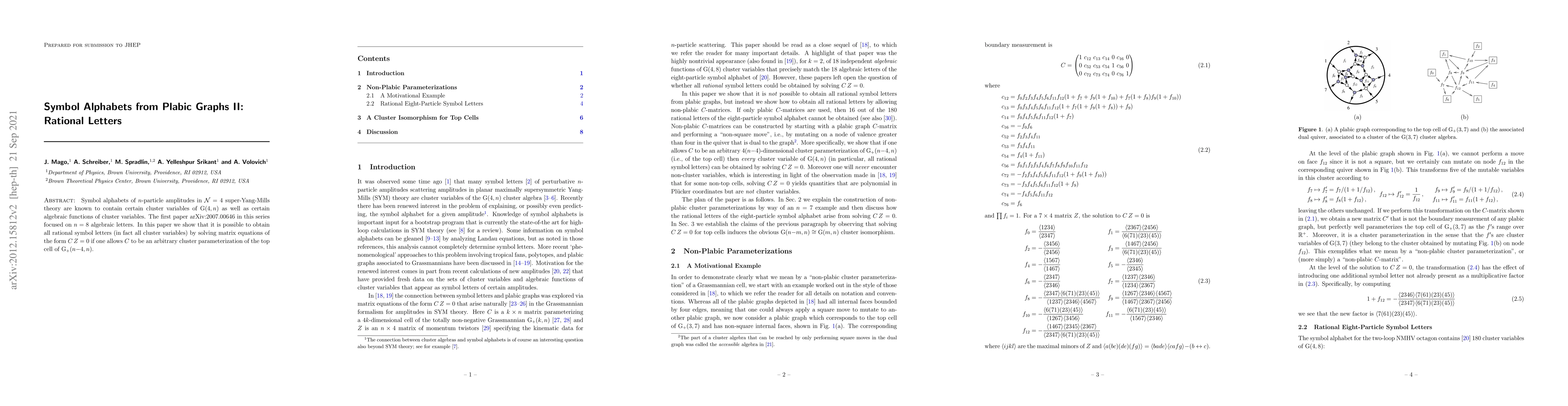 This paper extends previous work on symbol alphabets in N=4 super-Yang-Mills theory by demonstrating that all rational symbol letters, or cluster variables, can be derived by solving matrix equations C Z = 0 using arbitrary cluster parameterizations of the top cell of Gr_+(n-4,n).